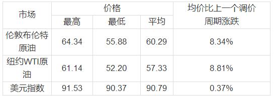 調價周期內,國際油價呈持續上漲走勢,倫敦布倫特和紐約WTI油價分別連續9個交易日和連續8個交易日上漲,雙雙突破每桶60美元,創2019年1月以來上漲時間最長紀錄。2月17日兩市油價分別漲至每桶64.34美元、61.14美元,為近13個月以來高位。