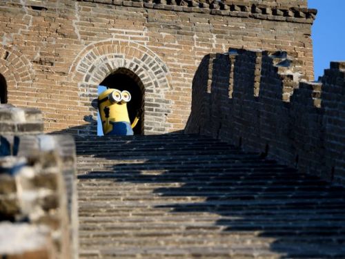 8月29日,由環球影業和照明娛樂共同出品的3D動畫電影《小黃人大眼萌》的三位主角斯圖爾特、凱文和鮑勃真人人偶登上北京水關長城,開啟中國之旅。據介紹,小黃人真人人偶將進行全國巡演,在各地影院和粉絲互動。