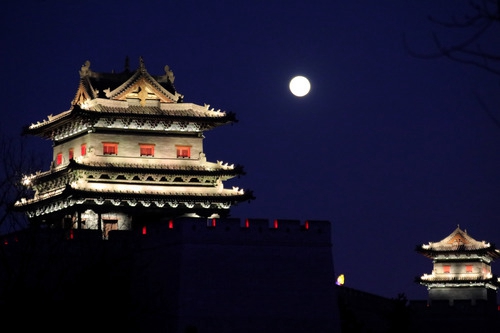 2019年2月19日在山西大同市平城區拍攝的元宵明月。新華社發