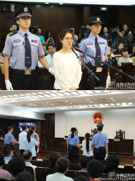 早上郭美美乘坐囚車抵達現場,網友“輿論熱點”在微博曝光了郭美美下囚車的照片。郭美美素顏現身,身穿白上衣、黑褲子,戴著眼鏡,梳著馬尾辮,面無表情。