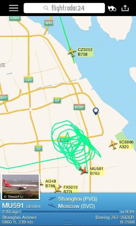 MU591航班抵達浦東機場上空后,并沒有立即降落,而是在空中持續盤旋。