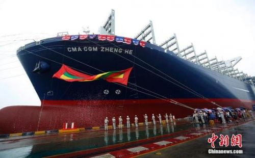 另?yè)?jù)中新網(wǎng)上海9月12日電 以中國(guó)偉大航海家鄭和名字命名的18000TEU(標(biāo)準(zhǔn)箱)超大型集裝箱船,12日在上海長(zhǎng)興島完工并交付給承租運(yùn)營(yíng)方—國(guó)際航運(yùn)界三大班輪公司之一的法國(guó)達(dá)飛海運(yùn)集團(tuán)公司。