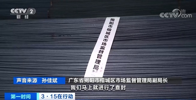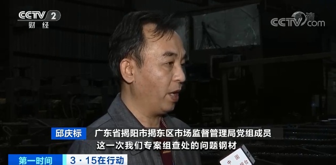 廣東省揭陽市揭東區市場監督管理局黨組成員 邱慶標:這一次我們專案組查處一批問題鋼材,涉案違規人員有15名。目前我們先查封,立案查處,查明問題鋼材去向。下一步我們進行拉網式全覆蓋地進行專項清查整治行動。