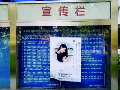 對于張貼數百張海報為校容帶來的影響,他私下表示,“考慮不周,只是為了證明自己的誠意。”海報上的女生疑為同校播音主持專業的一名大二學生,此前在學校中已小有名氣,且不乏追求者。