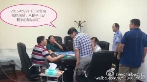 爆料貼稱,昨日下午16點55分,煙臺市公安局芝罘分局奇山派出所根據群眾舉報,在一聚賭地點將正在打麻將賭博的 4個人和一名旁觀者現場抓獲,其中包括煙臺市中級人民法院的黨組成員、副院長畢崇江,被抓時畢崇江正在打麻將賭博,他是當天下午乘坐法院公車來到聚賭地點的,目前該案件正在處理當中。