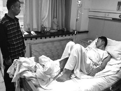 23日下午,記者來到市立五院見到了躺在病床上的小吳,小吳躺在病床上表情很痛苦,不愿多說話。