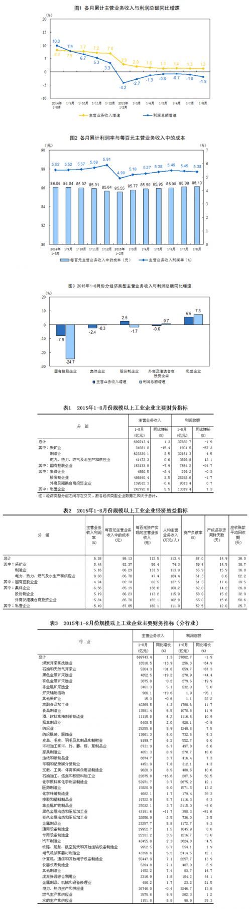 1-8月份,在41個(gè)工業(yè)大類行業(yè)中,31個(gè)行業(yè)利潤總額同比增長,10個(gè)行業(yè)下降。主要行業(yè)利潤增長情況:農(nóng)副食品加工業(yè)利潤總額同比增長11.7%,紡織業(yè)增長7.5%,石油加工、煉焦和核燃料加工業(yè)增長50.5%,化學(xué)原料和化學(xué)制品制造業(yè)增長12.1%,有色金屬冶煉和壓延加工業(yè)增長3.5%,通用設(shè)備制造業(yè)增長0.6%,電氣機(jī)械和器材制造業(yè)增長12.1%,計(jì)算機(jī)、通信和其他電子設(shè)備制造業(yè)增長13.9%,電力、熱力生產(chǎn)和供應(yīng)業(yè)增長13.8%,煤炭開采和洗選業(yè)下降64.9%,石油和天然氣開采業(yè)下降67.3%,非金屬礦物制品業(yè)下降8%,黑色金屬冶煉和壓延加工業(yè)下降51.6%,專用設(shè)備制造業(yè)下降3%,汽車制造業(yè)下降4.5%。