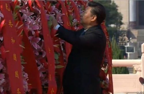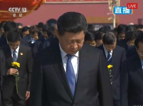 習近平等黨和國家領導人今日向人民英雄敬獻花籃。