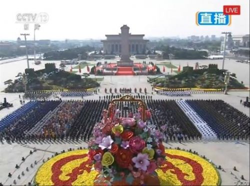 十八大后的第一個國慶,習近平、李克強、張德江、俞正聲、劉云山、王岐山、張高麗等黨和國家領導人于2013年10月1日10點前,冒著細雨步行來到天安門廣場中央,出席向人民英雄紀念碑敬獻花籃儀式。