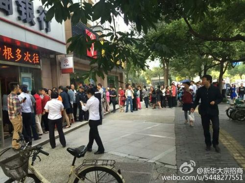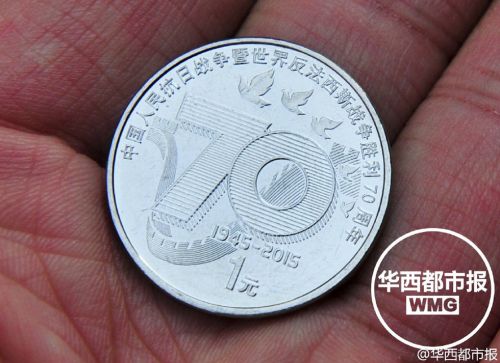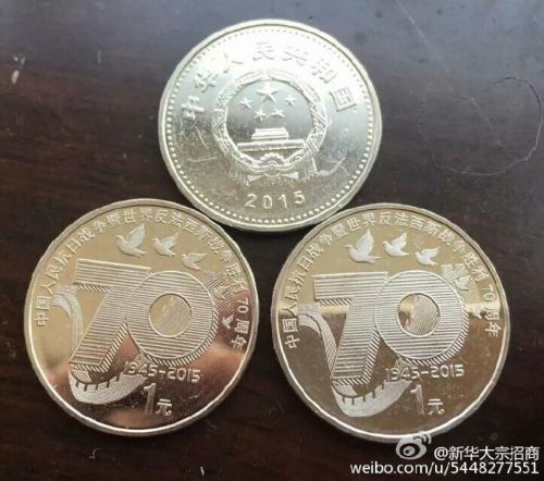今日上午8:30分,中國人民銀行發行的“中國人民抗日戰爭暨世界反法西斯戰爭勝利70周年”紀念幣可以兌換啦。面額1元,全國發行數量為5億枚,與同面額人民幣等值流通。很多銀行門口都已經排起了長隊。
