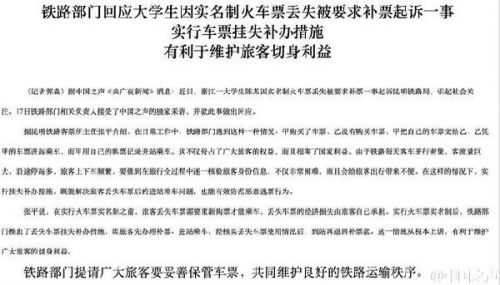 @中國之聲:【鐵路部門獨家回應:車票掛失補辦維護旅客利益】此前鐵路部門遇到:甲買車票,乙沒有買車票,甲把車票交給乙,乙憑車票進站乘車,甲購票記錄進站乘車。鐵路部門推出丟失車票掛失補辦措施,旅客先辦理補票、進站乘車,核實丟失車票使用情況后,到站再退回補票款。