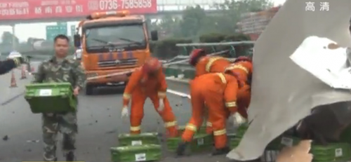湖南運(yùn)鈔車爆胎墜橋致3死 散落400萬現(xiàn)金