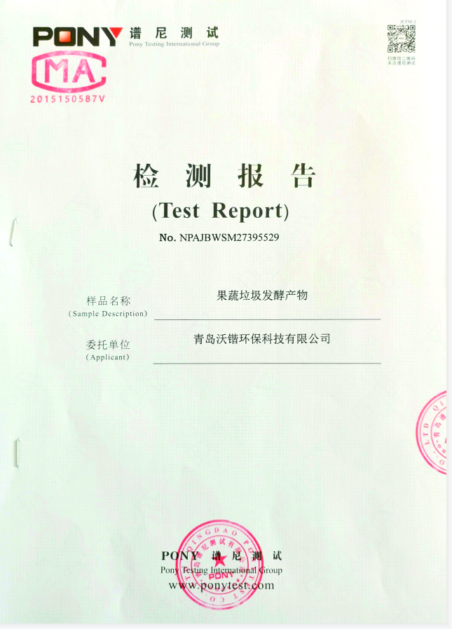 有機肥原料檢測報告