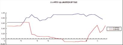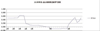從10月份的數據來看,青島-釜山航運市場景氣指數從月初的小幅下降之后開始緩慢的爬升。景氣指數從月初的0.244升高到0.508。雖然景氣指數有所上升,但并未超過9月份的最高值0.520.從歷史上看,本來10月份已經開始進入市場的淡季,但是運價依然有所上升,景氣指數也因此小幅爬升。業內預測未來幾周景氣指數依然會有小幅爬升的可能。