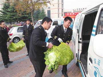 交運(yùn)速遞“家家送”將愛(ài)心大白菜送給困難家庭。