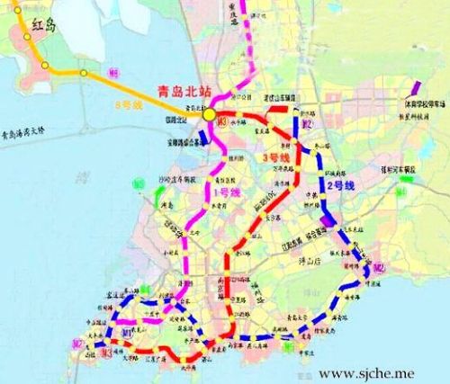 8號(hào)線:線路起自鐵路膠州北站,沿線主要經(jīng)過(guò)膠東國(guó)際機(jī)場(chǎng)、膠東鎮(zhèn)、大沽河、河套、紅島火車(chē)站、紅島街道、青島北站、嘉定山等區(qū)域,止于市南區(qū)五四廣場(chǎng),線路長(zhǎng)約60.9公里。支線從線路正線河套站分出,至膠州中心城區(qū),支線長(zhǎng)約18.5公里。