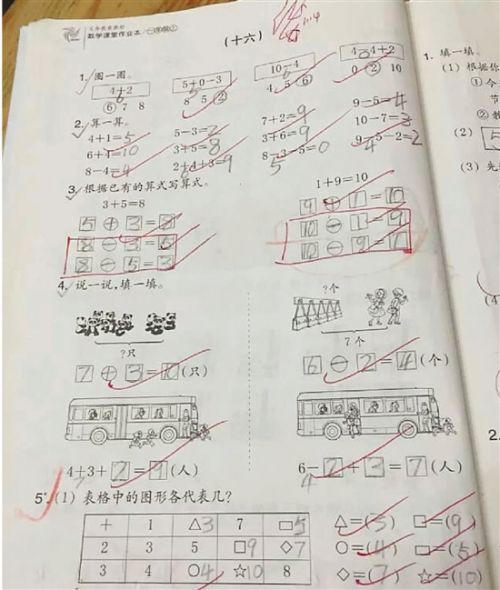 記者采訪了一位小學(xué)一年級的一線數(shù)學(xué)老師,這位老師說,課堂練習(xí)本不是每一頁都有這樣的題,即便有,也僅有一題,數(shù)量不多。