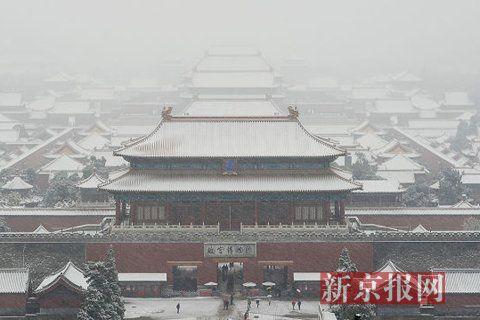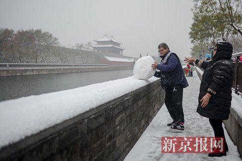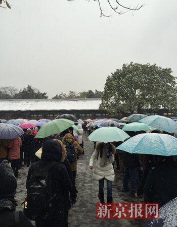 原標(biāo)題:市民賞雪熱情高 故宮門外排長隊