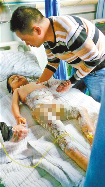 “現在我們幫孩子翻身時,稍微碰著都疼得大叫。”戴先生哽咽,兒子宇宇很堅強,上藥時盡管疼痛,還是咬牙忍住,淚水在眼里打轉。“他說他是男子漢。”