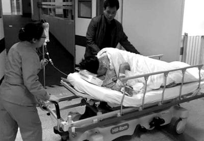 當(dāng)事人張先生被推進(jìn)醫(yī)院就診。微博圖片