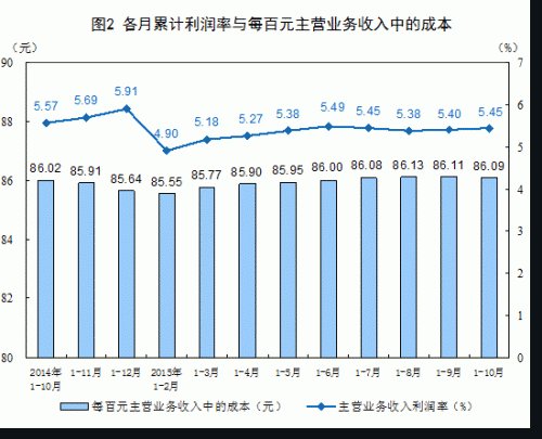 1-10月份,規(guī)模以上工業(yè)企業(yè)實(shí)現(xiàn)主營業(yè)務(wù)收入893727.9億元,同比增長1%;發(fā)生主營業(yè)務(wù)成本769374.2億元,增長1.1%。