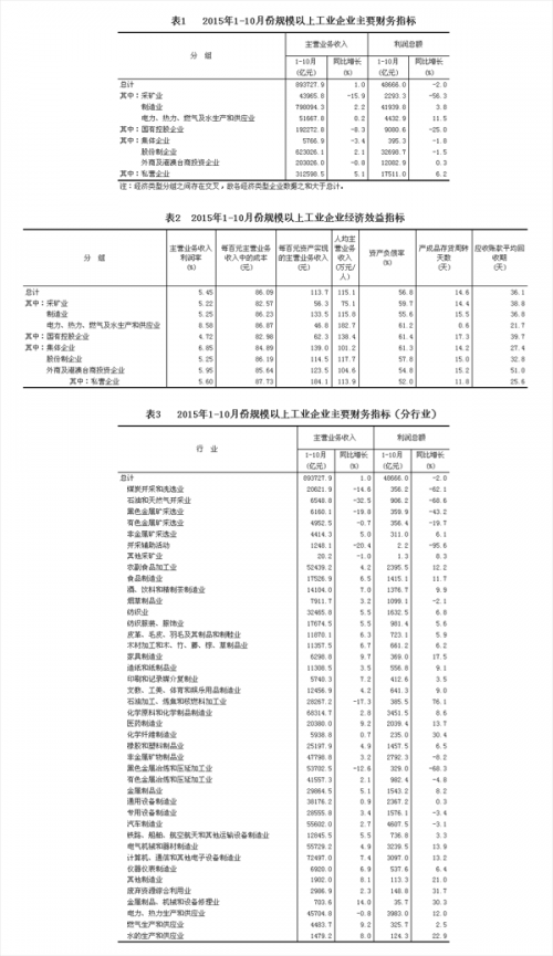 1-10月份,全國規(guī)模以上工業(yè)企業(yè)實(shí)現(xiàn)利潤總額48666億元,同比下降2%,降幅比1-9月份擴(kuò)大0.3個(gè)百分點(diǎn)。