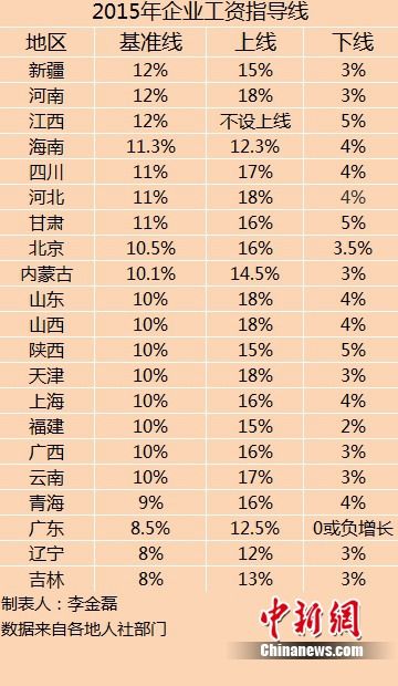 (七)21省份公布2015年企業(yè)工資指導(dǎo)線 同比多持平或下調(diào)