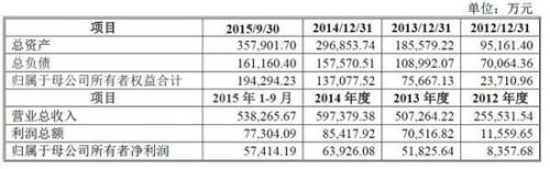 最近幾年中國快遞業快速發展,申通快遞也交出了一張漂亮的財務“成績單”。以下是申通快遞最近三年一期主要財務數據: