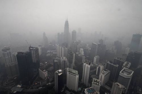 2015年9月13日,馬來(lái)西亞首都吉隆坡的地標(biāo)建筑雙子塔被煙霧籠罩。