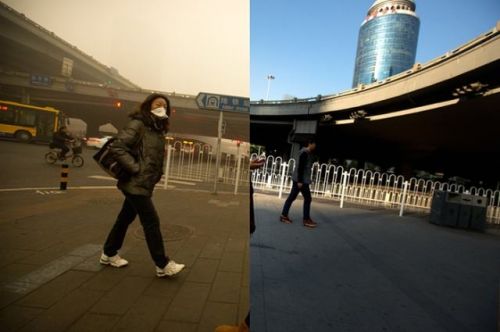 8日是北京首次啟動(dòng)空氣重污染紅色預(yù)警措施的第一天,在北京生活的人們首次面對(duì)單雙號(hào)限行、中小學(xué)停課的嚴(yán)格舉措。人們將一起應(yīng)對(duì)持續(xù)72個(gè)小時(shí)以上的空氣重度污染。