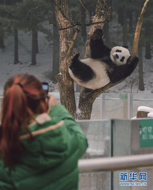 “大雪”節(jié)氣過后,地處中國東北的吉林省長春市漫天飄雪。銀裝素裹的冬日景色對于2015年6月移居于此的大熊貓“嘉嘉”和“夢夢”來說,顯得格外新奇,這是它們在中國北方高緯度地區(qū)度過的首個冬天。