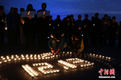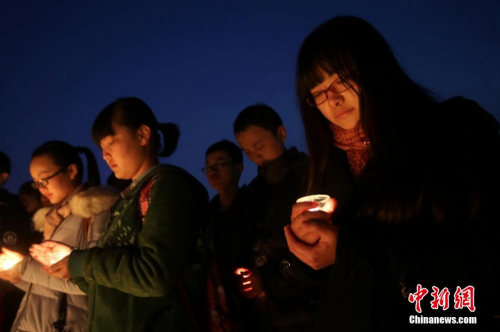 南京大學生點燃燭光祭奠遇難同胞寄哀思。