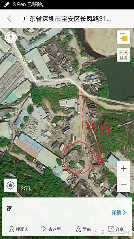 他們繞道山坡上無人看守的區(qū)域,摸進了坍塌的土堆。通過手機高德衛(wèi)星地圖,找到了家的位置。