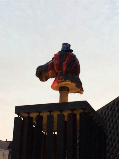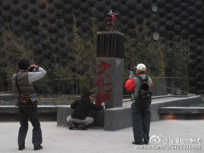據臺媒報道,臺北“故宮”南院前天開幕試營運,成龍贈送十二生肖獸首公共藝術給故宮。但有媒體報道是統戰,今天傍晚4、5點有一男一女突然朝龍和馬獸首上倒紅漆,被人發現報警,目前警方已將兩人帶回嘉義縣太保分駐所偵訊中。