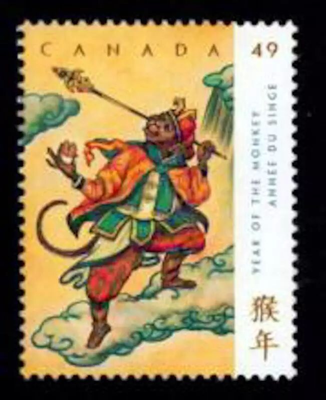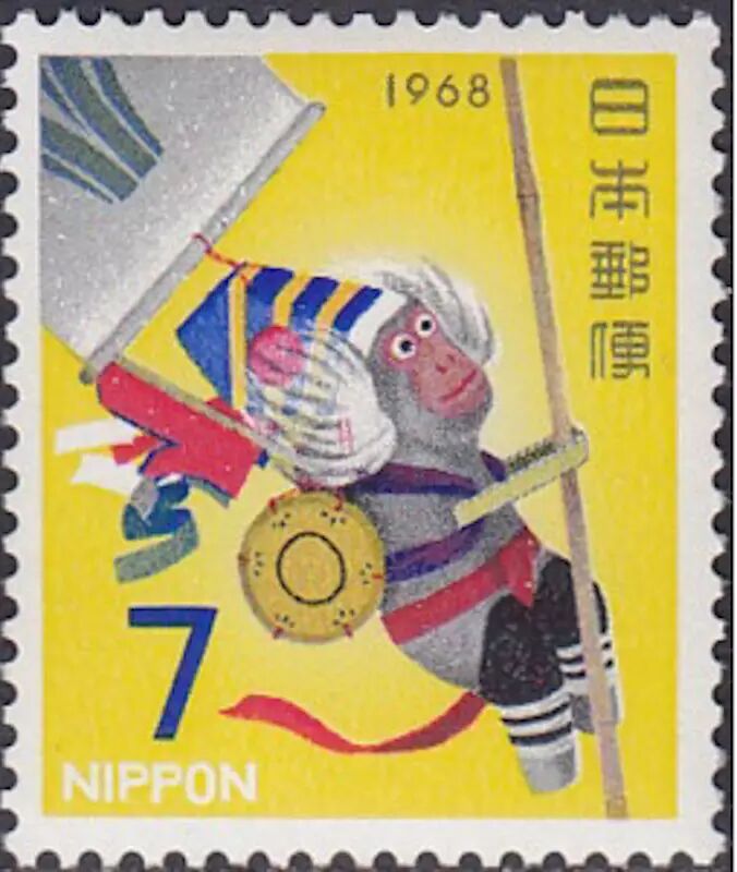 日本這枚1968年的生肖猴票似乎也有點(diǎn)兒大圣的意思。