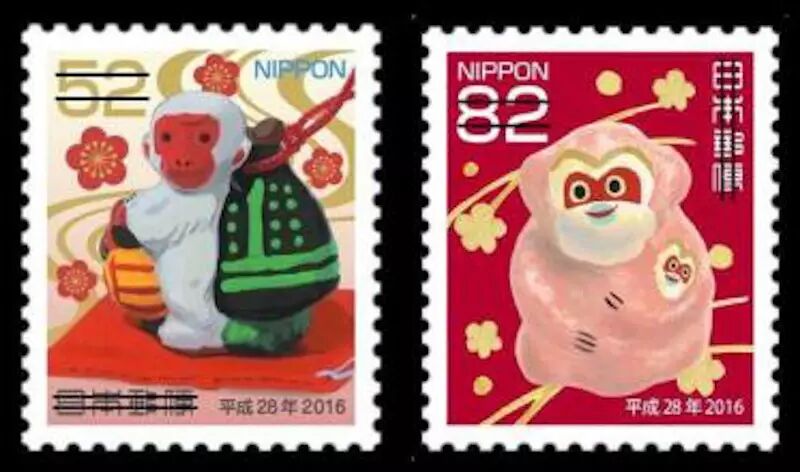 1950年2月1日,日本以虎年為主題發(fā)行世界上第一套生肖郵票。和我們一樣,今年日本也推出了兩枚最新猴票。