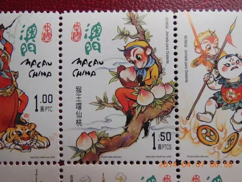 同是大鬧蟠桃園,澳門郵票里的悟空卻是萌萌的。
