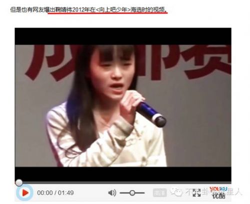 這是她在參加向上吧少年的視頻,不會有錯,這眼袋也是沒誰了,圓臉眼睛也不知道去哪了