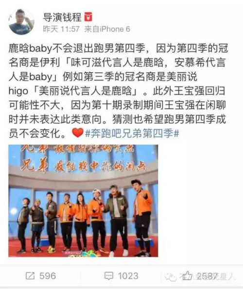 昨天網曝的跑男4名單一下子引爆了網絡,主要是鹿晗和baby的退出,寶強的回歸和鞠婧祎的加入,讓網友一下子爆炸了。