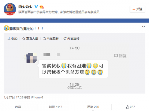 有沒有發現我們的警察蜀黍越來越萌了?北京公安會給舉報有功的朝陽群眾設計卡通形象,南京江寧公安會設計三國版的友情提醒,現在,西安公安差點變成“西安公安婚介所”了……