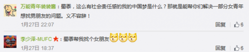 還有人干脆直接在下面征婚了:我是一個有社會責任感的人,我的夢想就是幫你們解決部分女青年想找男朋友的問題,想要男友的來找我吧!