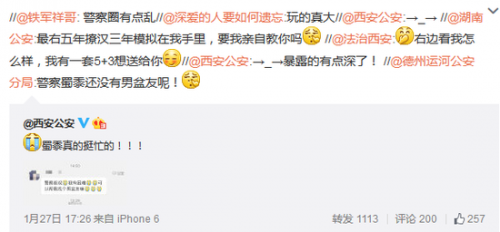 最會玩的是其他警察蜀黍,陜西省西安市司法局官方微博@法治西安 竟公然和@德州運河公安分局秀起了恩愛!