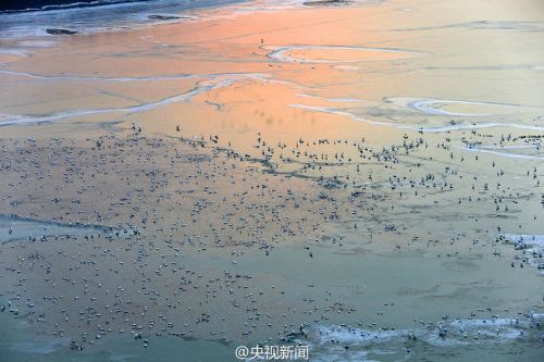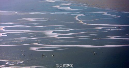 近日,受極寒天氣影響,黃河山西平陸段出現大面積結冰。從空中俯瞰,冰層猶如蜿蜒曲折的白色絲帶浮于河面,夕陽照射,“白色精靈”點綴,宛如精美的印象山水畫。 劉文禮 攝 圖片來源:央視新聞認證微博