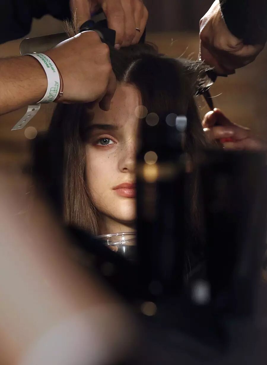 1月25日,在2016年巴黎春夏高級定制女裝展上,一名模特在后臺為“Giambattista Valli”時裝秀做準備。新華社/法新
