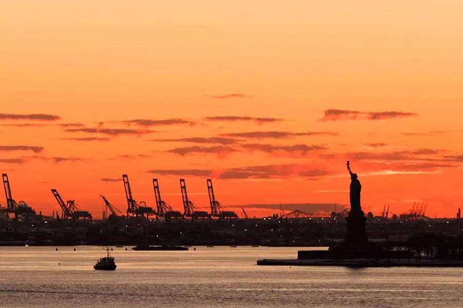 1月24日,美國紐約的自由女神像沐浴在斜陽中。