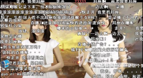 在眾粉絲開始懷疑是錄播時,畫面突然跳到兩個萌妹子解說,粉絲們終于確定不是直播大呼被游戲商欺騙,紛紛彈幕吐槽萌妹子和游戲。然后觀眾中已經有老司機號召去此三國游戲貼吧爆吧,而且有不少老司機相應。