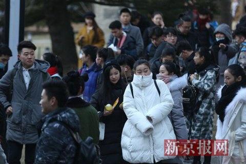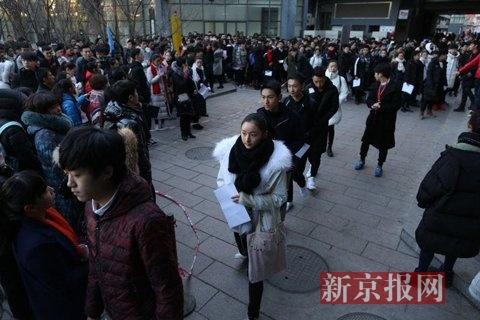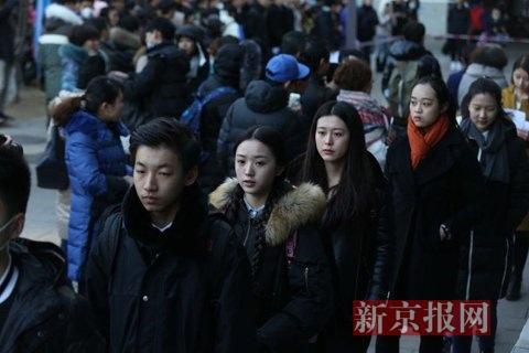 2016年2月15日,北京電影學院,2016年度藝考招生,早7:30北京低溫零下四度,報考表演系的考生在考場外候考。春節假期剛過,北京電影學院、中央戲劇學院、中國傳媒大學三所高校今天同時拉開2016年藝考大幕。