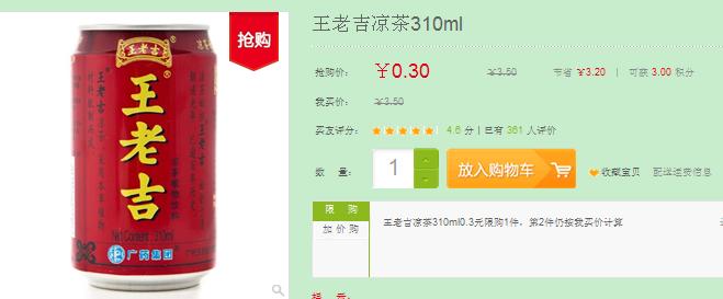 廣藥王老吉以0.3元/罐超低價鋪貨電商
