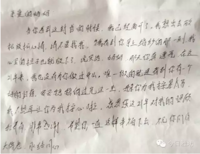 28日中午十二點(diǎn)左右,王培洪的母親馮女士給記者打來電話問詢記者能否與王培洪取得聯(lián)系,孩子在醫(yī)院留下一封信后外出至今聯(lián)系不上。