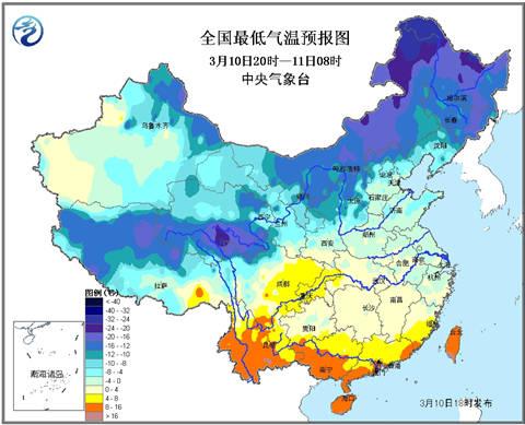 中央氣象臺3月10日18時繼續發布寒潮藍色預警: